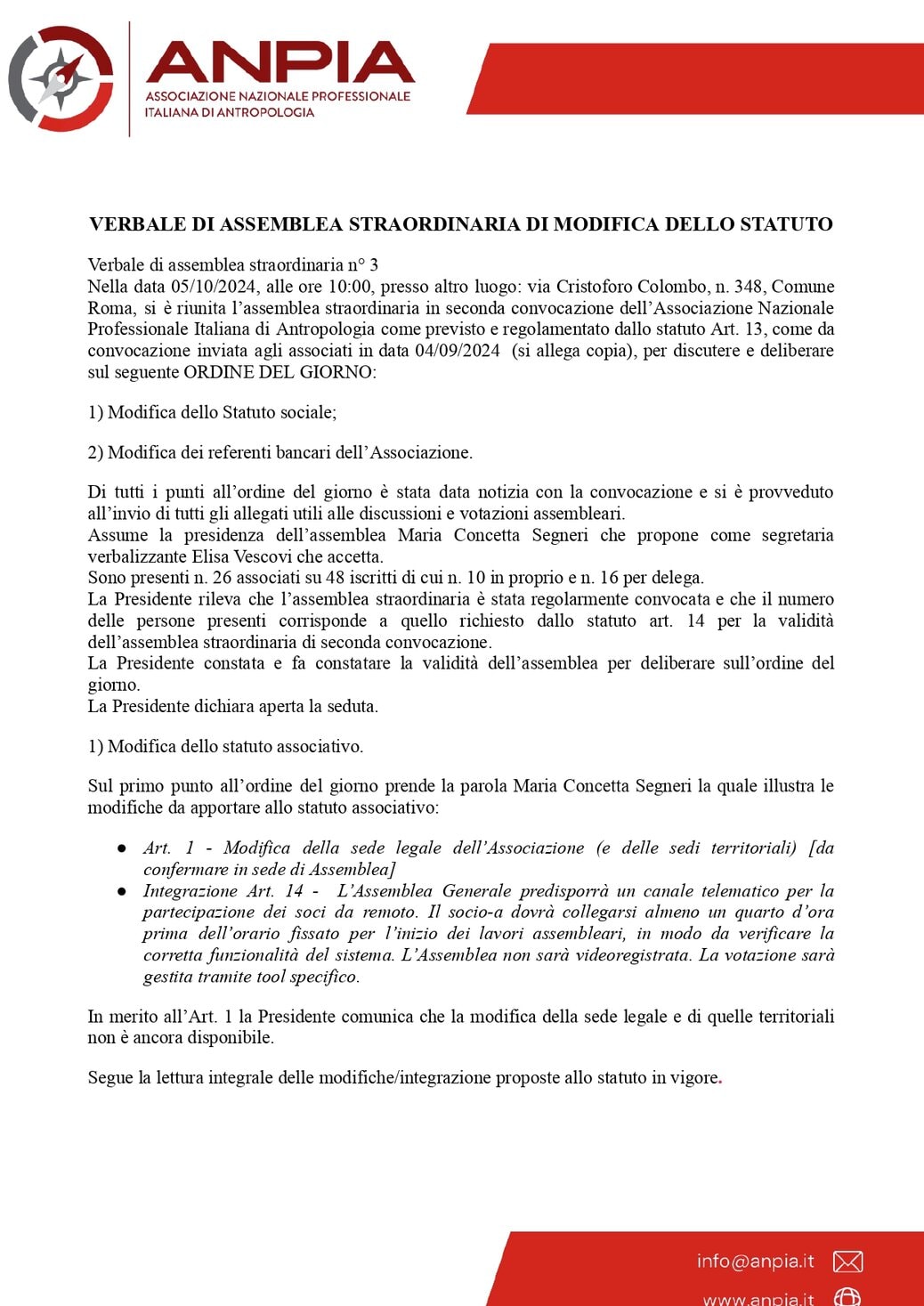 Il 5 ottobre 2024 si è tenuta a Roma l’Assemblea straordinaria di ANPIA per l’approvazione delle modifiche allo Statuto.